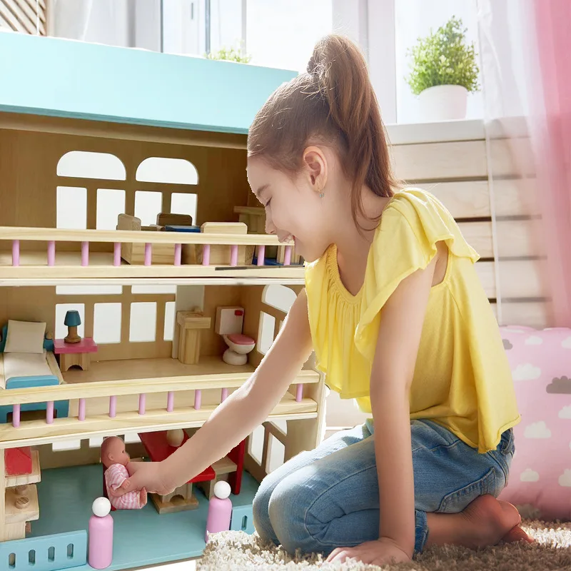 Nordic Style Wooden Doll House Boys and Girls' Simulation Play House Princess Villa for Pretend Play and Preschool